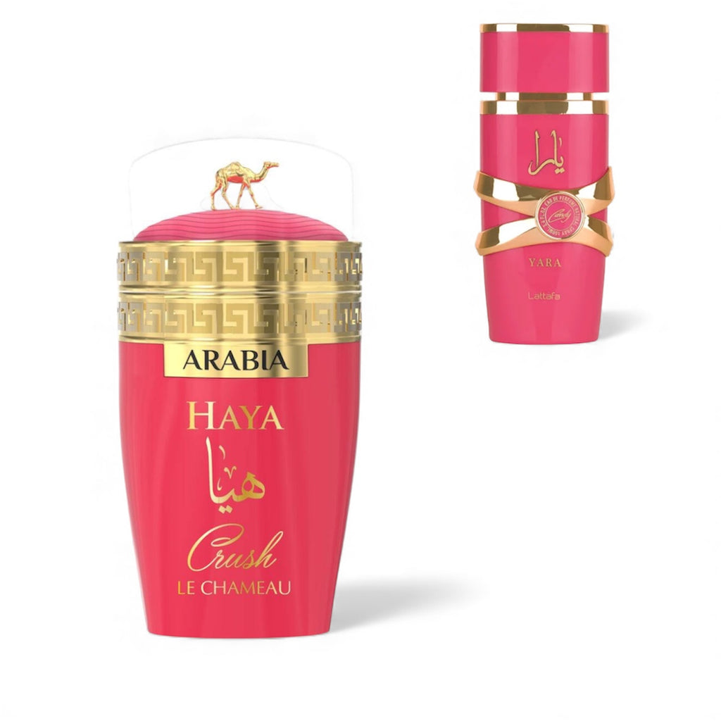Arabia Haya Crush – A juicy burst of sour cherry and raspberry sweetens into a creamy heart of marshmallow and vanilla, settling on a soft, sensual base of suede and sandalwood. Playful, dreamy, and utterly addictive.
