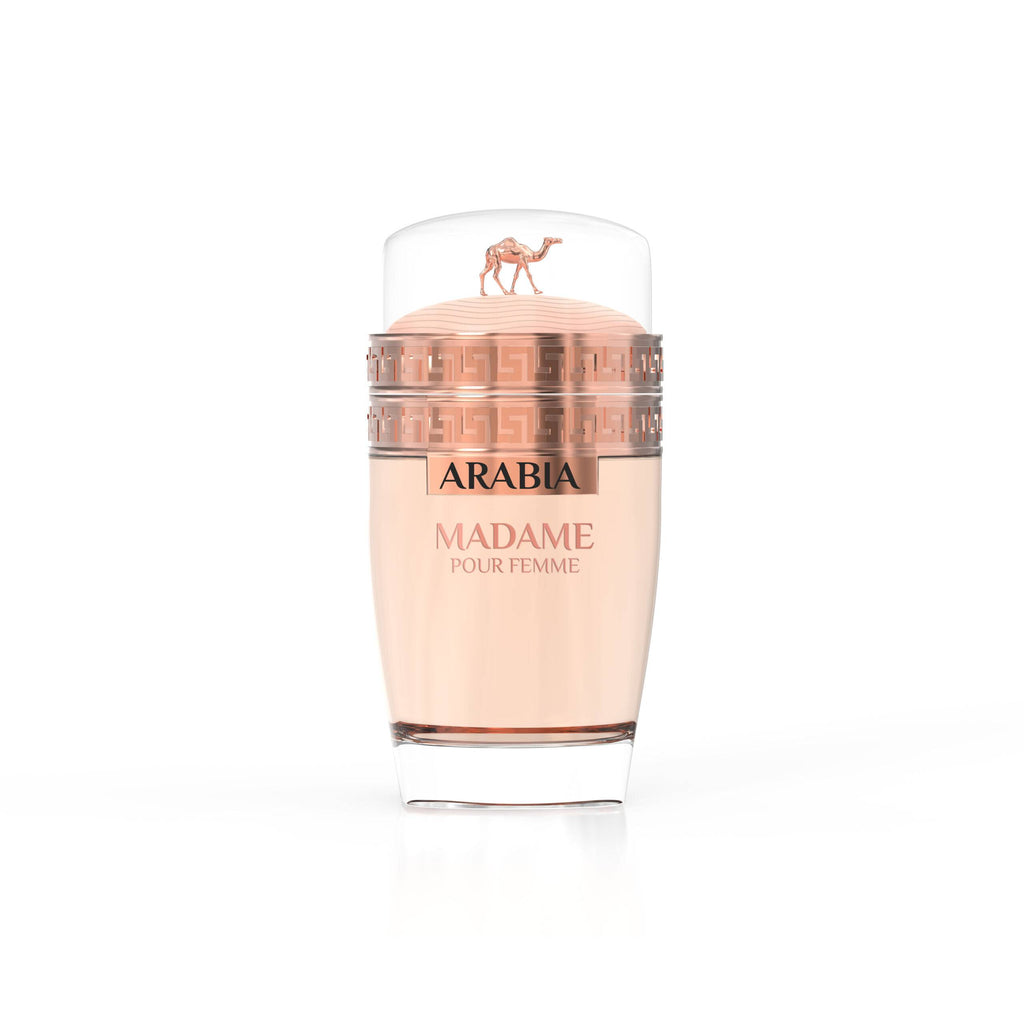 Arabia Madame is a sparkling citrus opening of bergamot and grapefruit leads to a romantic heart of rose and litchi, resting on a soft, elegant base of vanilla and musk. Timeless, graceful, and effortlessly chic.