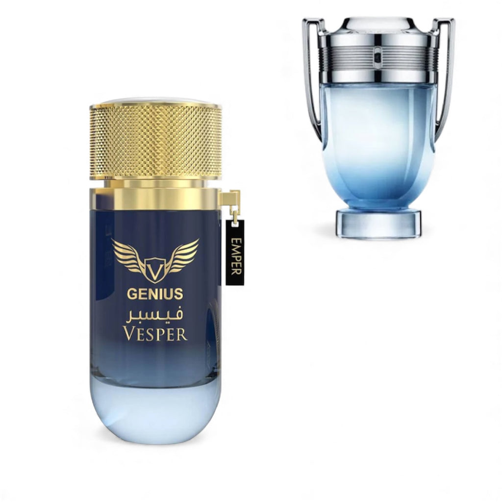 Genius Vesper is a crisp grapefruit and violet leaf awaken the senses, flowing into a heart of sea breeze and rosewood, grounded in smooth amber and ambergris. Fresh, modern, and irresistibly deep.