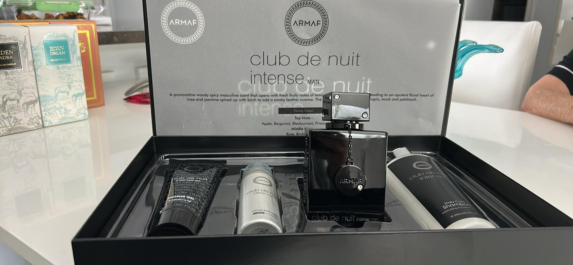 Top notes are Lemon, Pineapple, Bergamot, Black Currant and Apple; middle notes are Birch, Jasmine and Rose; base notes are Musk, Ambergris, Patchouli and Vanilla Set indluces: 3.6oz Eau de Toilette spray, 1.7 oz canned Body Spray, 3.4 oz Shower Gel, 8.4 oz Shampoo